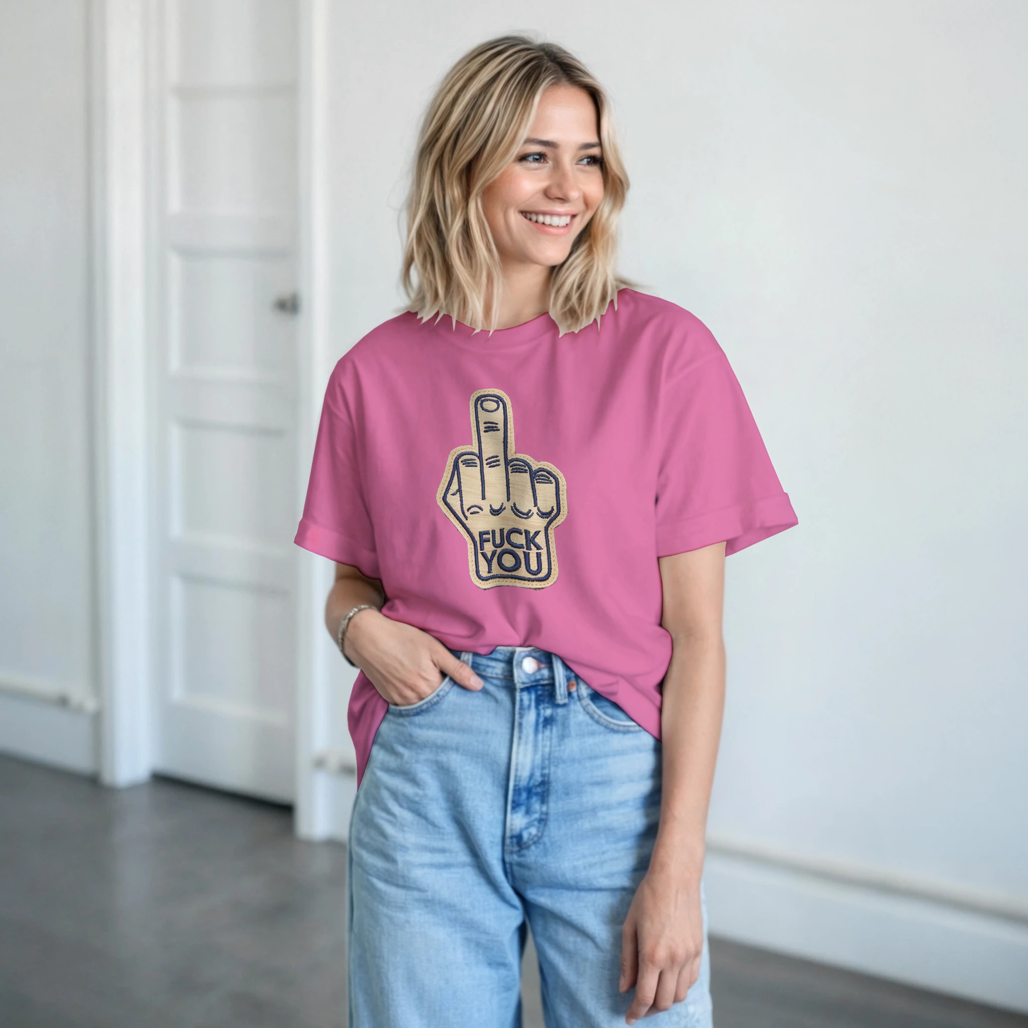 Aufnäher F..K you / Heavyweight Unisex T-Shirt mit Rundhalsausschnitt