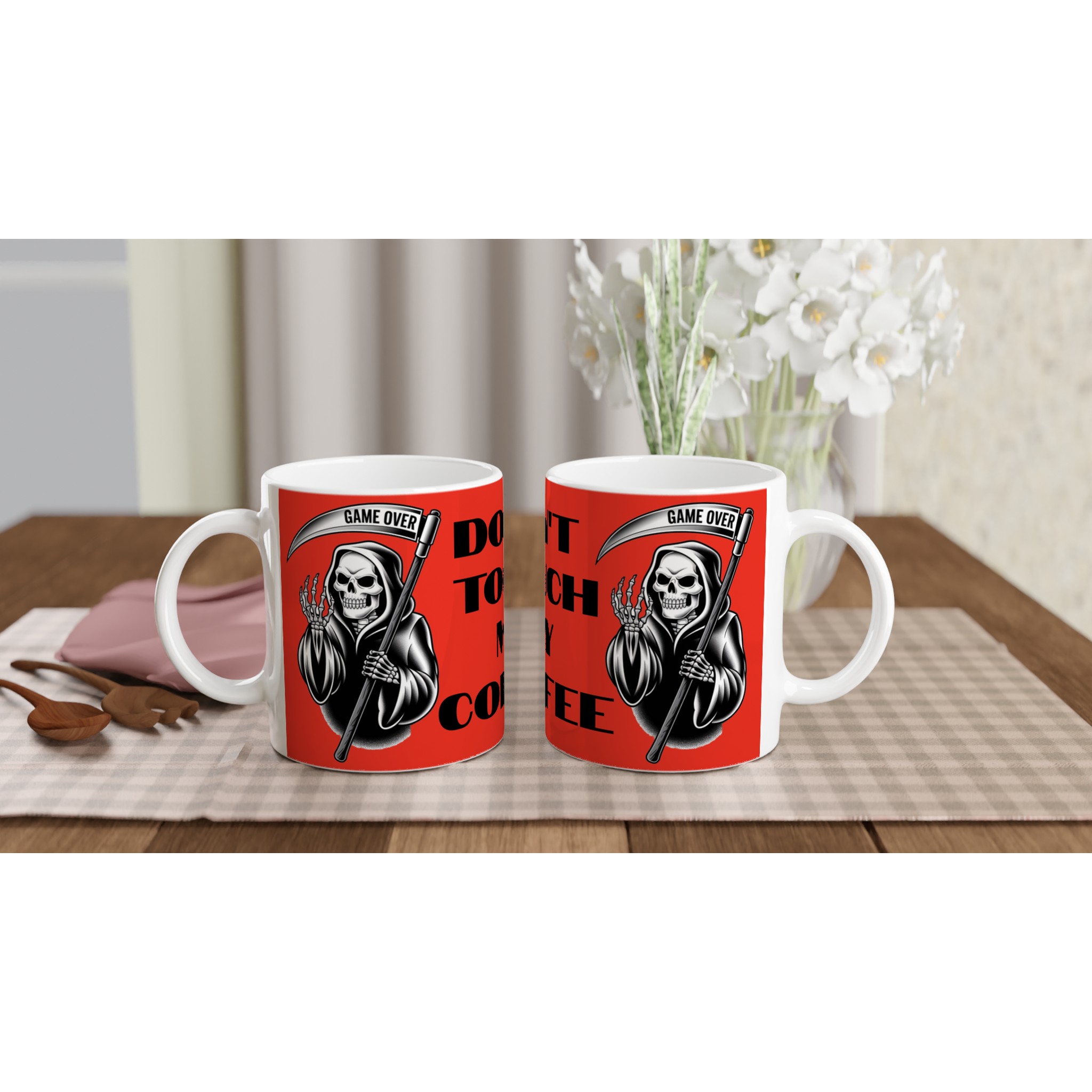 Diese schöne Keramiktasse ist perfekt für jeden Anlass: deinen Kaffee am Morgen, eine heiße Schokolade oder dein Heißgetränk der Wahl. Die Tasse ist glänzend weiß mit einem farbigen Rand, innen, und Griff. Die Drucke kommen auf eine schöne Arte und Weise und lebendig zur Geltung. Der Druck behält seine Qualität und seinen Glanz sowohl in der Mikrowelle als auch in der Spülmaschine.