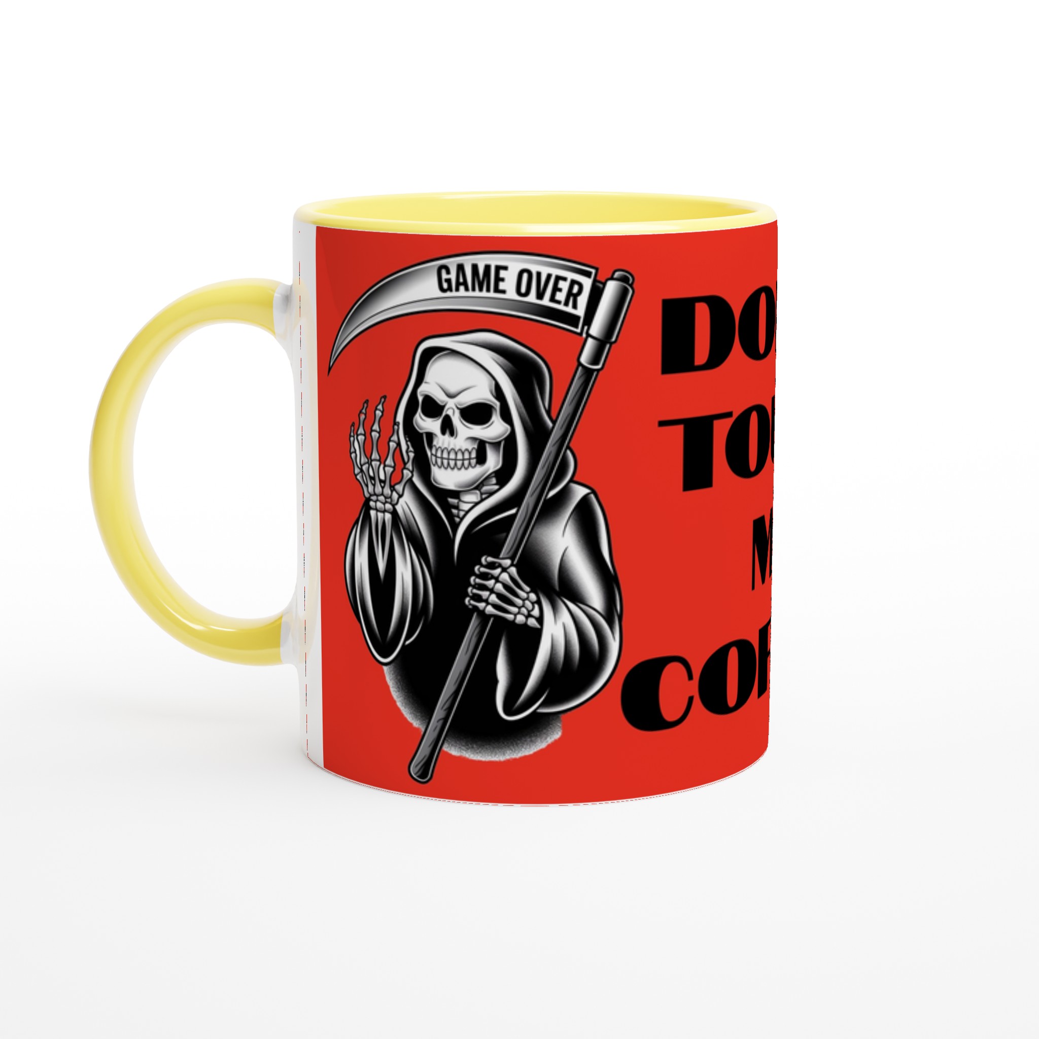 Diese schöne Keramiktasse ist perfekt für jeden Anlass: deinen Kaffee am Morgen, eine heiße Schokolade oder dein Heißgetränk der Wahl. Die Tasse ist glänzend weiß mit einem farbigen Rand, innen, und Griff. Die Drucke kommen auf eine schöne Arte und Weise und lebendig zur Geltung. Der Druck behält seine Qualität und seinen Glanz sowohl in der Mikrowelle als auch in der Spülmaschine.