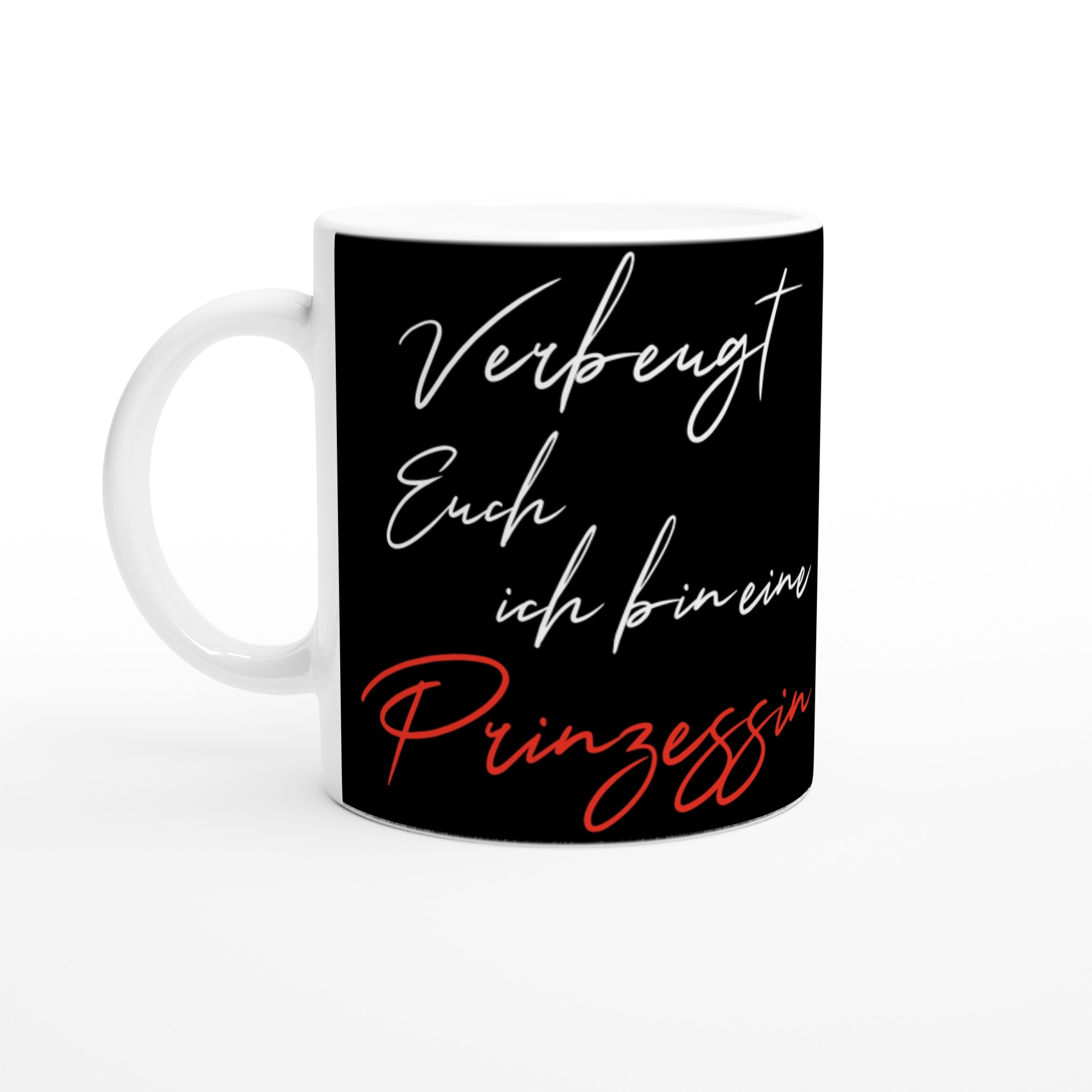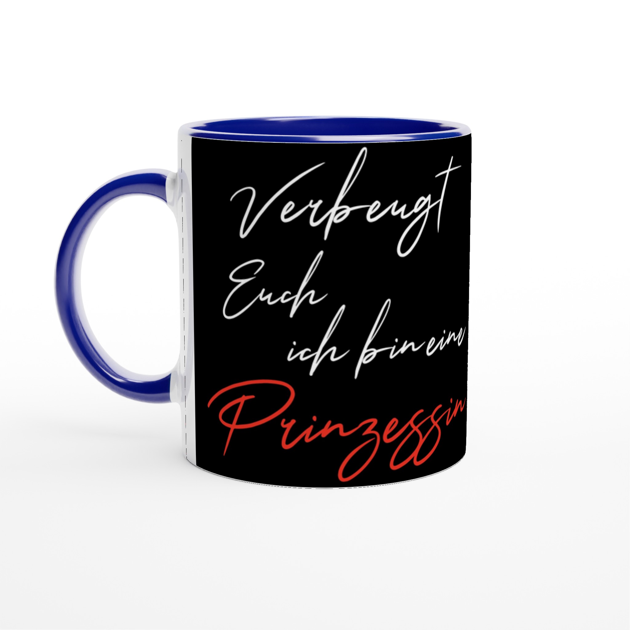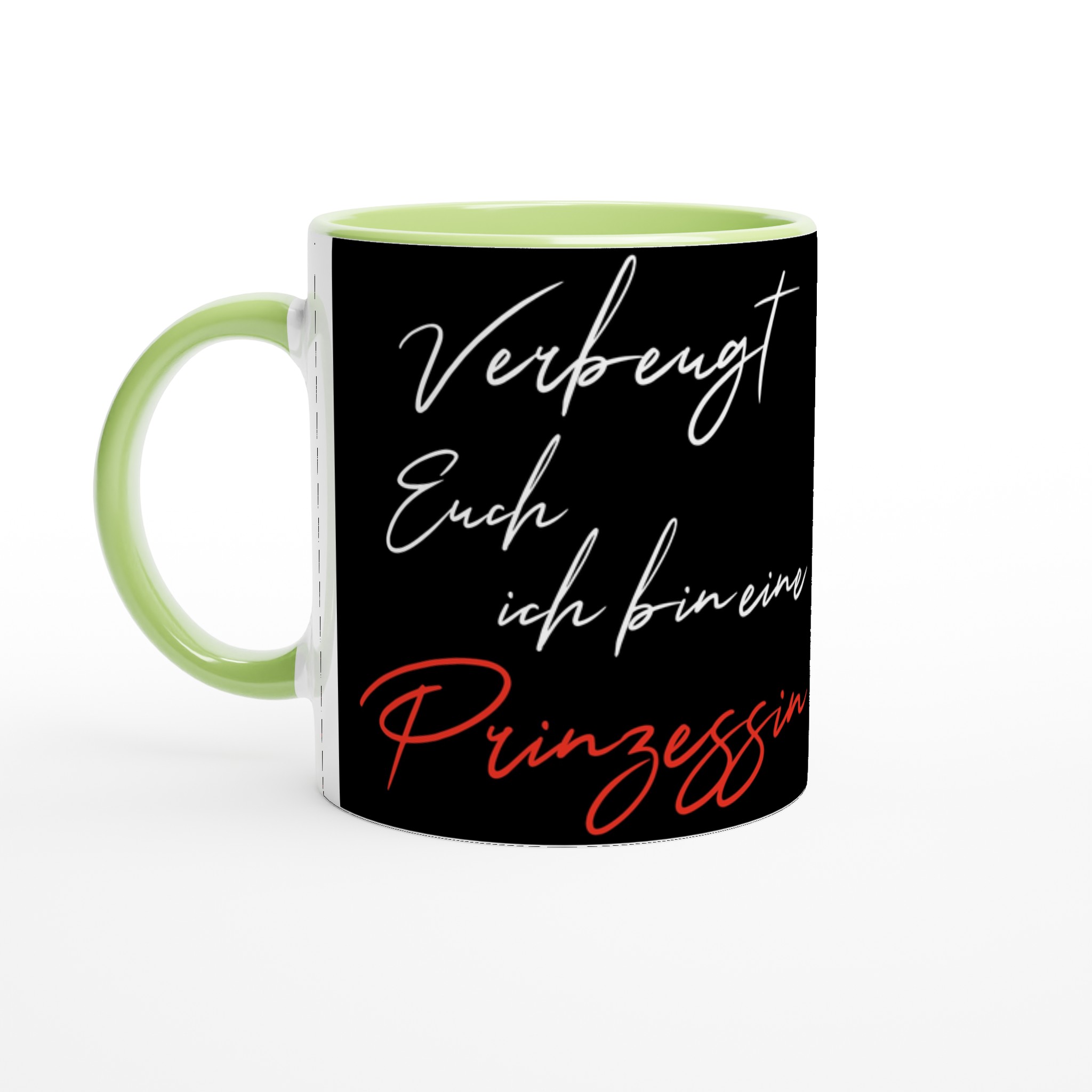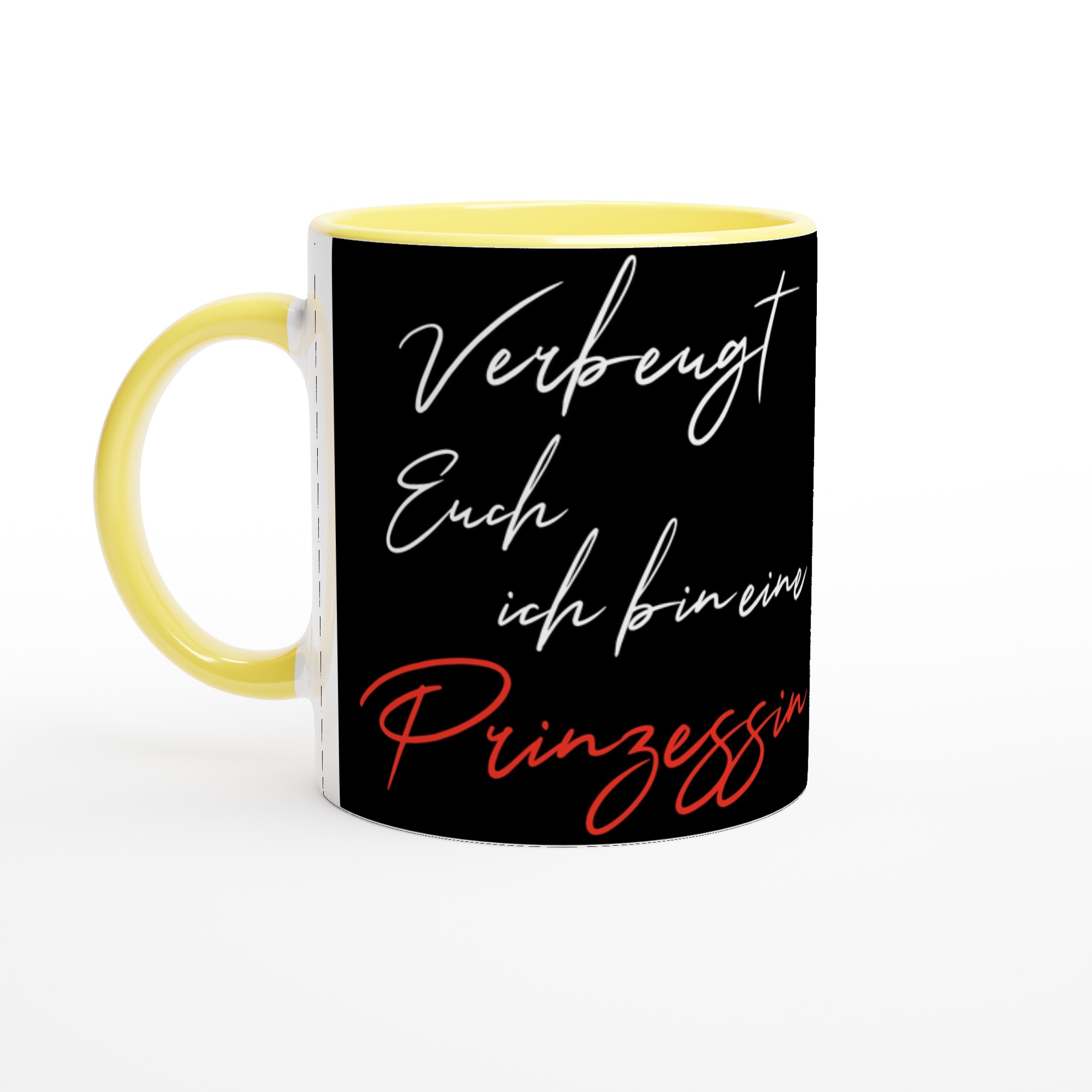 Diese schöne Keramiktasse ist perfekt für jeden Anlass: deinen Kaffee am Morgen, eine heiße Schokolade oder dein Heißgetränk der Wahl. Die Tasse ist glänzend weiß mit einem farbigen Rand, innen, und Griff. Die Drucke kommen auf eine schöne Arte und Weise und lebendig zur Geltung. Der Druck behält seine Qualität und seinen Glanz sowohl in der Mikrowelle als auch in der Spülmaschine.